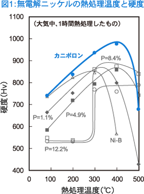| 耐熱性 | 無電解Ni-Pよりも耐熱性に優れ、高温に於ける使用にも充分適用可能。 |